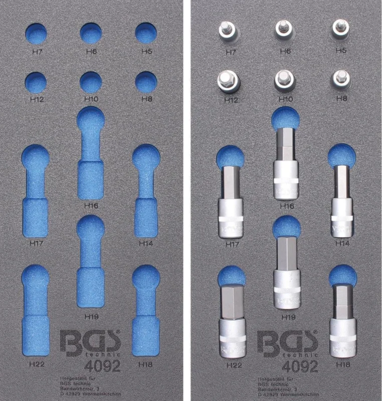 1/3 Werkstattwageneinlage: Bit-Einsatz-Set Innen-6-kant, 12,5 (1/2), 12-tlg. (leer und gefüllt) Nur Heute