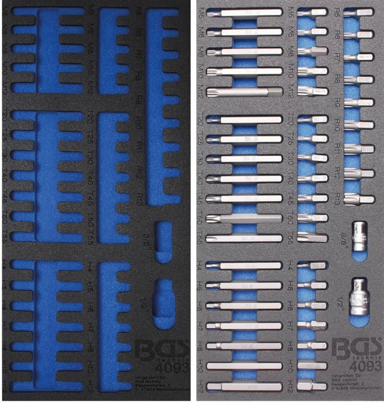 1/3 Werkstattwageneinlage: Kombi-Bit-Set, 49-tlg. (leer und gefüllt) Neu