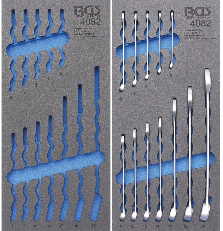 Kracherpreis Werkzeugeinlage Maul-Ringschlüssel-Satz, 6-22 mm, 12-tlg. leer und bestückt