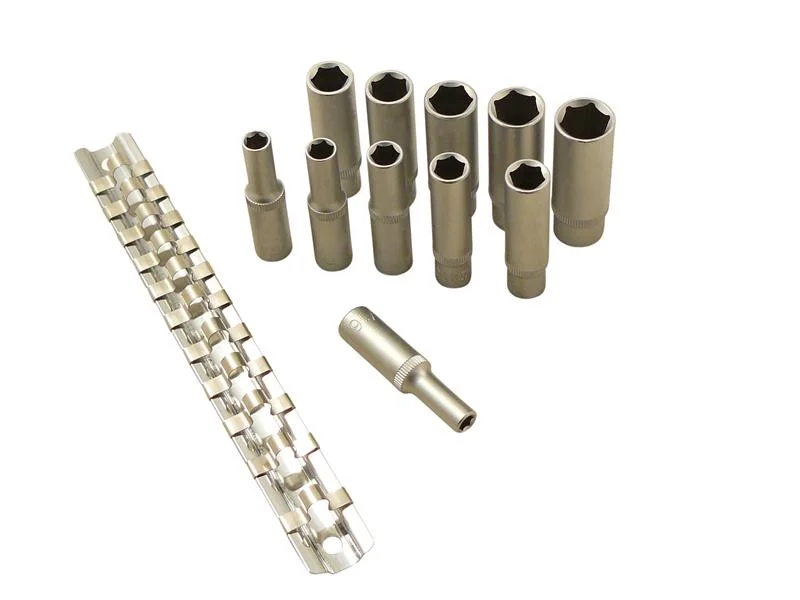 Stecknüsse, tiefe Ausführung von 5/32″ – 1/2″. Steckschlüsseleinsätze auf praktischer Schiene.